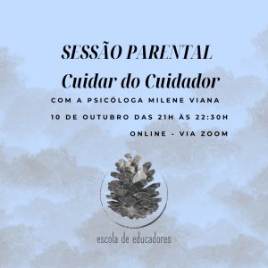 A Escola de Educadores convida pais (aberto a educadores no geral) para uma sessão muito especial: Cuidar do Cuidador, com a psicóloga Milene Viana, no dia 10 de Outubro, das 21 às 22:30 horas, online, no zoom. Como cuidar de sua saúde mental pode fortalecer o cuidado com os seus filhos? Este será um encontro […]